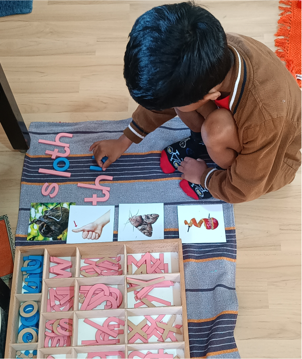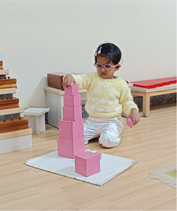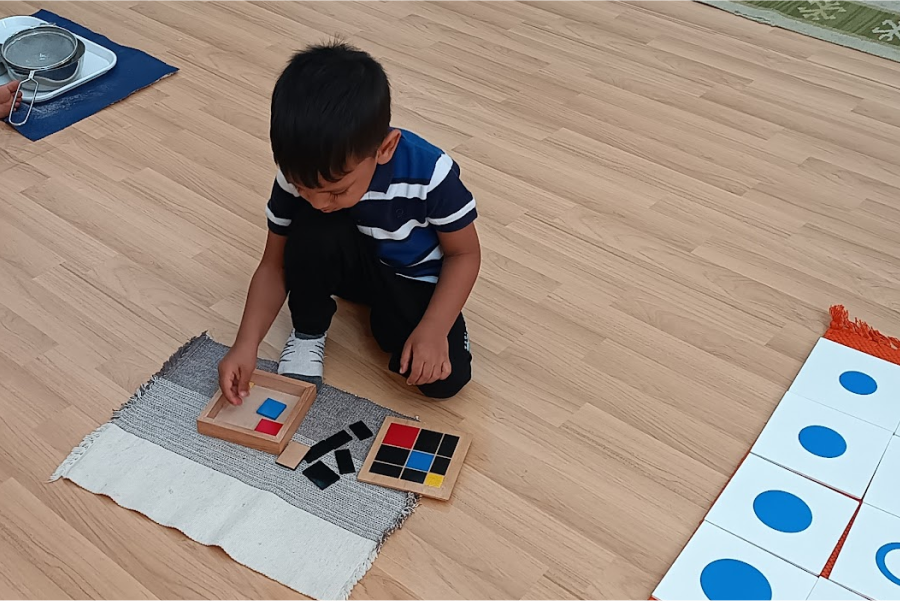 The environment promotes the child's independence in the exploring and learning. A fine balance between freedom and self-discipline allows each child to work with activities that meet his needs. Children have all the tools to succeed. Trays they can carry, supply of art materials so they can practice and repeat. Children have the freedom to pick up activities that have been shown to them and the independence to do it on their own.
